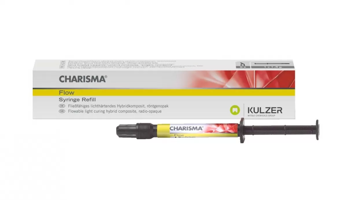 Charisma Flow yra takus, šviesa kietinamas, rentgeno spinduliams nepralaidus hibridinis mišinys.Jis yra indikuotinas adhezyvinėms dantų spalvos priekinių ir galinių dantų restauracijoms.