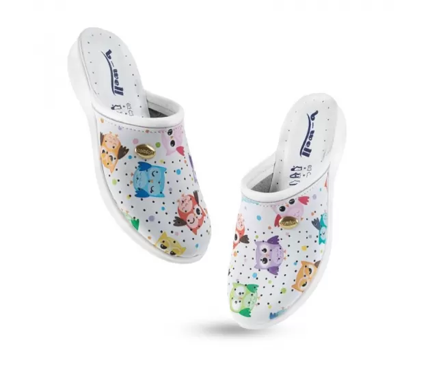 Darbo klumpės AERIAL Lady, baltos su pelėdomisMedicininės moteriškos darbo klumpės yra tai, ko jums reikia norint pradėti savo darbo dieną su šypsena!