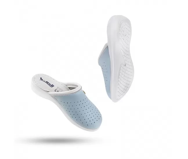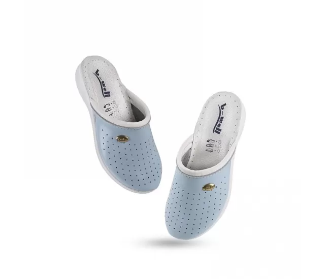 B-well AERIAL Lady medicininių moteriškų šlepečių - darbo klumpių priekinė dalis pagaminta iš natūralios odos.