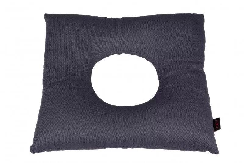 Bedsore pillow with buckwheat hullsAn organic buckwheat hull pillow for bedsores can also be used for the treatment and prevention of ulcers, limb paresis or paralysis, lower back pain, hemorrhoids, multiple sclerosis, and in the postpartum period. The central hole of the pillow relaxes the parts of the body on it, protecting painful areas from pressure.This cushion does not absorb moisture and ensures excellent air circulation.