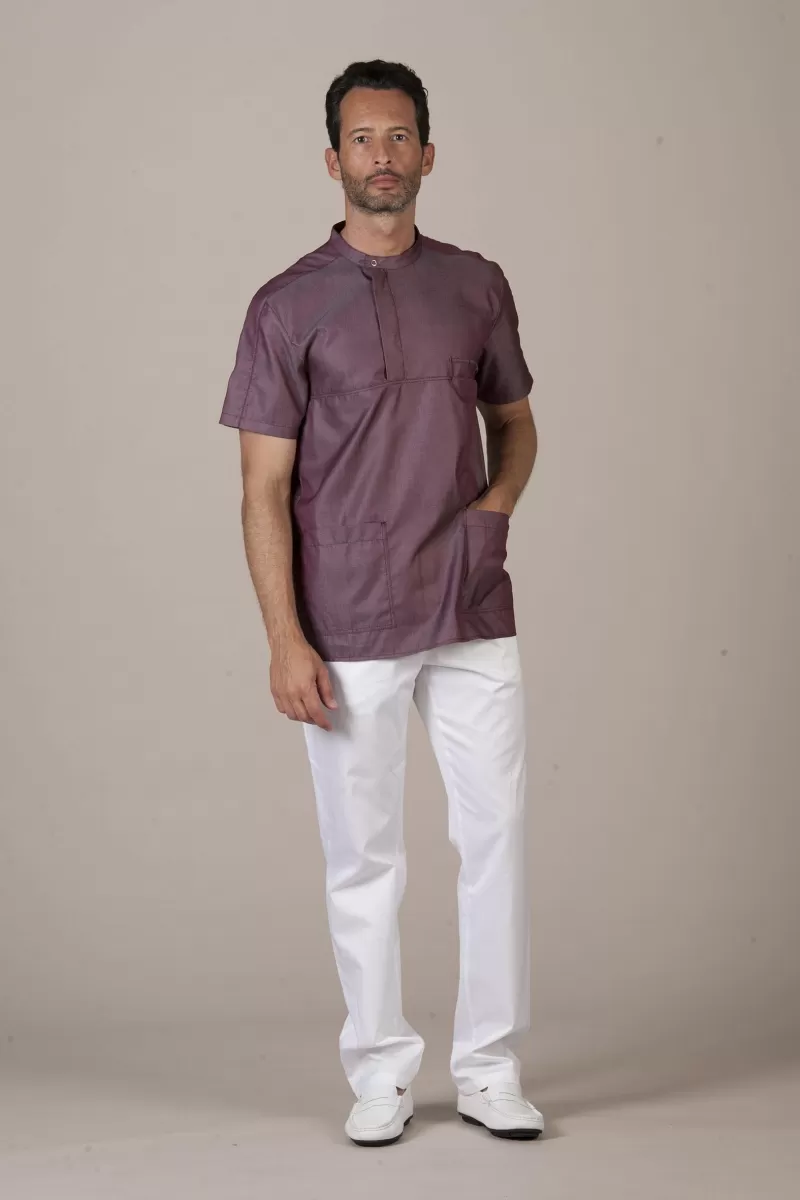 Closed by a Russian style collar, with snaps, this man top grants comfort adding a touch of elegance with the details that make it unique.
