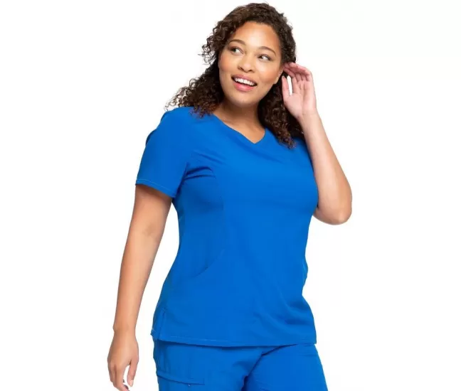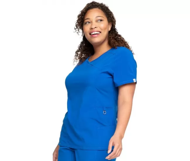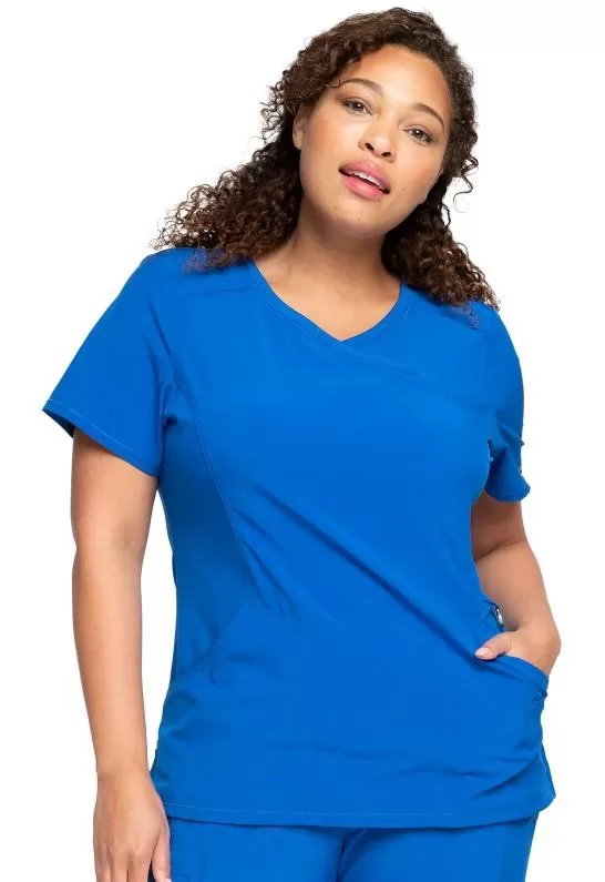 Mock Wrap Top CKE2625A in RoyalA Contemporary fit mock wrap top features two set-in front pockets, a logo O-ring above left pocket, left scissor pocket, one interior pocket, front and back princess seams, and side vents.