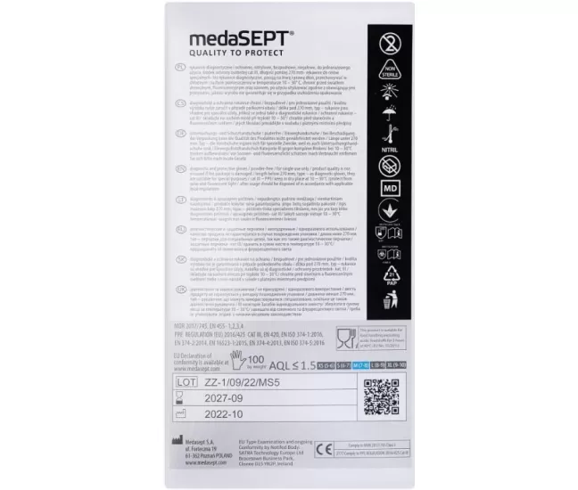 Nitrile examination and protective gloves, powder free, non-sterile for disposable use, medaSEPT, 100 pcs.Nitrile gloves without talc-powder filling.