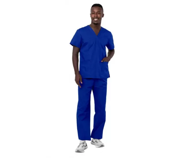 Unisex Drawstring Scrub Set 701 Royal BlueTop details: