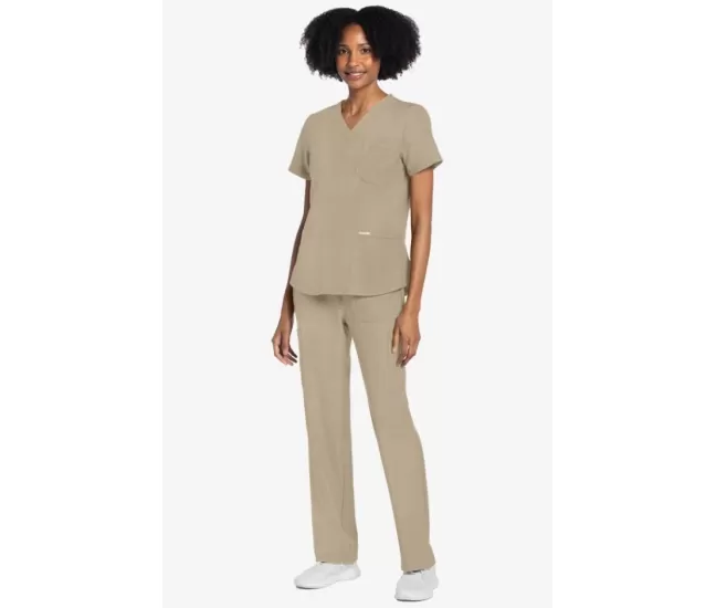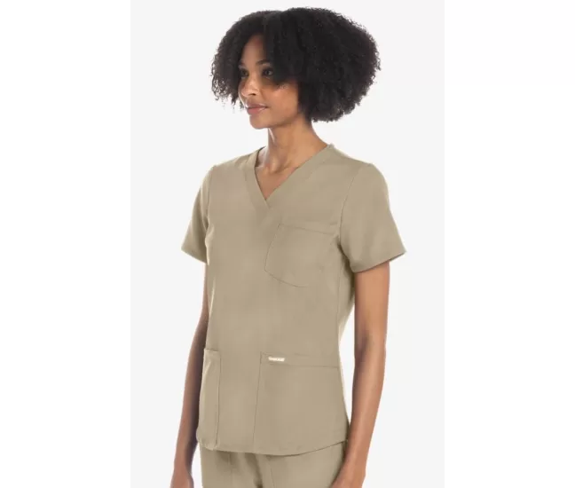 Women's 3-Pocket V-Neck Shirttail Scrub Top CK961A Khaki