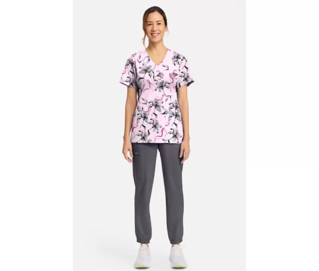 Women's Bumble Bee Bloom Print Scrub Top CK856 Loving LiliesBring a little buzz to your workday with the Bumble Bee Bloom Print Scrub Top from Cherokee. Covered in cheerful florals and whimsical bees, this print is an instant mood booster. Built for movement and comfort, this top is crafted with soft, stretchy fabric made in part from recycled polyester, making it a feel-good choice in every way. Practical details like two front pockets, side vents and a handy badge loop make it a workday favorite, while the cheerful print adds a pop of personality to your uniform.
