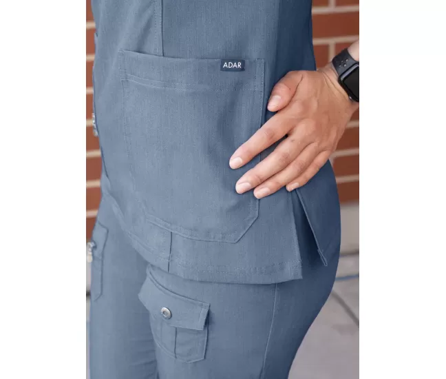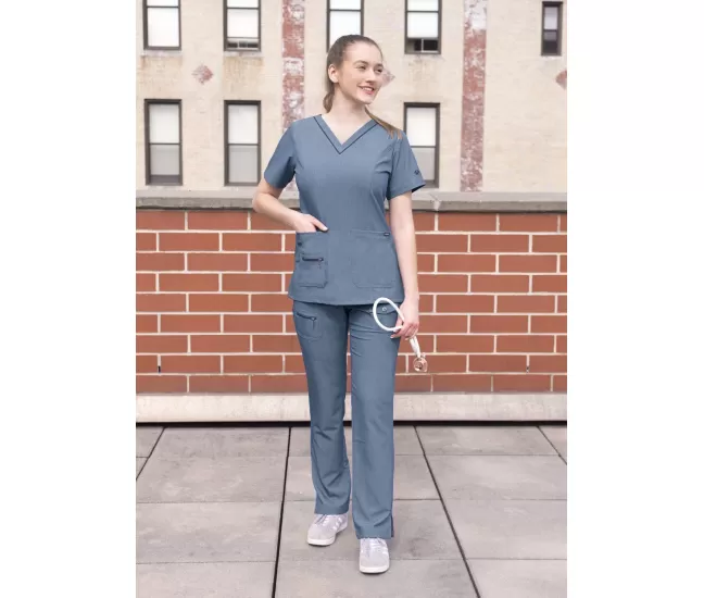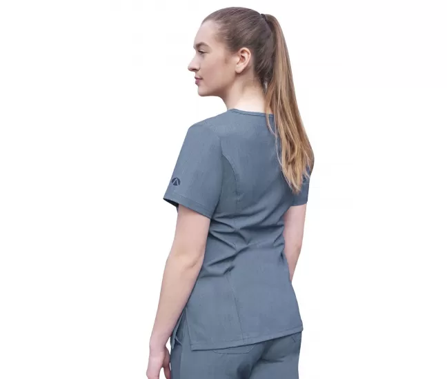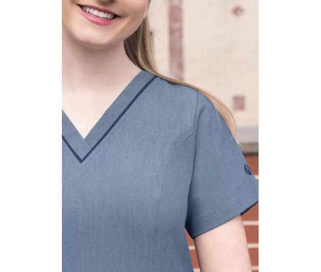Women's Elevated V-neck Scrub Top P4212 Heather NavyBeautiful details such as a double stitched neckline, back and front curved princess seams, shaped patch pockets and super soft stretch fabric truly make this scrub top a crowd favorite.
