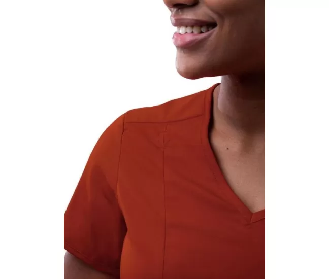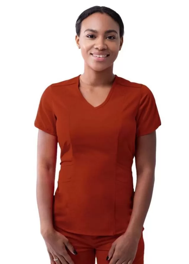 Women's Modern V-Neck Scrub Top P7002 Red OchreA sleek staple with flattering fit and supremely functional details, this V-neck scrub top looks professional and trendy.