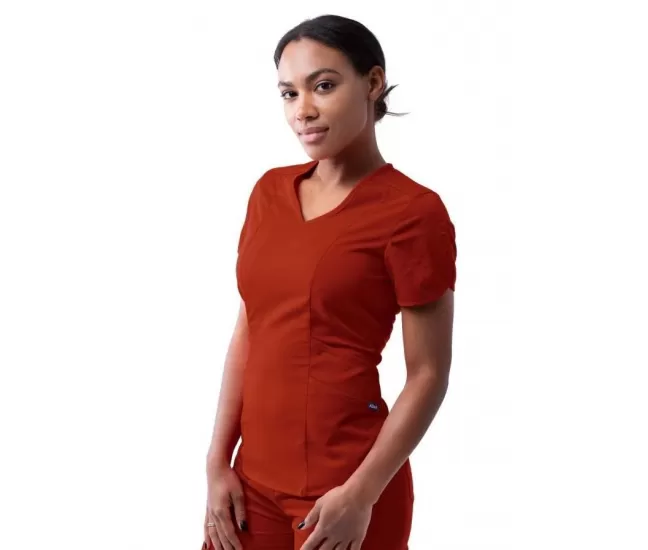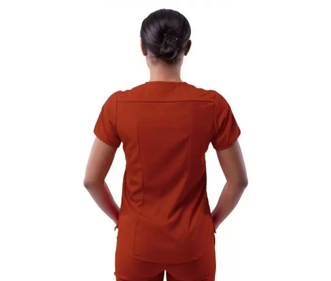 Women's Modern V-Neck Scrub Top P7002 Red Ochre