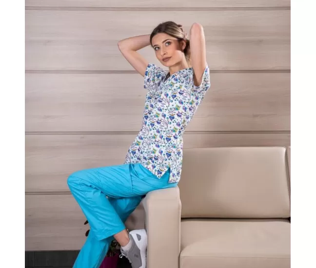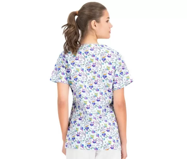 Medicininė moteriška palaidinė BAMBINA, balta su pelėdomisB-well BAMBINApalaidinė yra balta su nuotaikingomis pelėdomis, tinka nešioti vaikų medicinos centruose, odontologijos kabinetuose, darželiuose, veterinarijos klinikose.