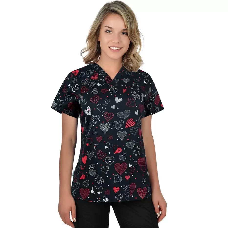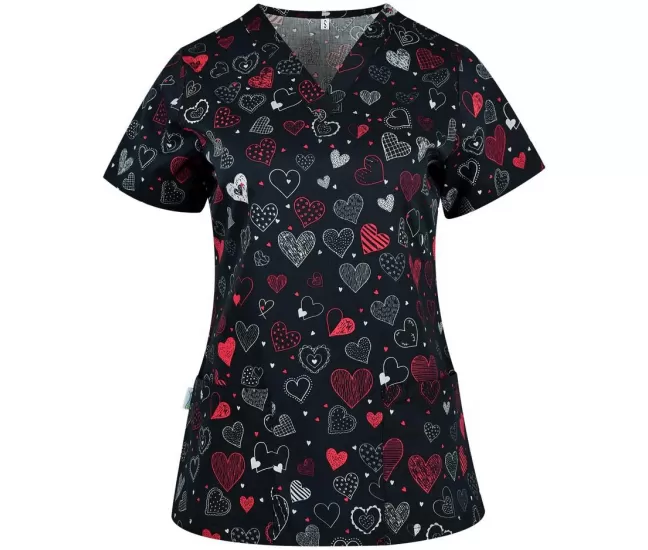 Medicininė moteriška palaidinė BAMBINA, juoda su širdelėmisB-well BAMBINApalaidinė yra juoda su nuotaikingomis širdelėmis, tinka nešioti vaikų medicinos centruose, odontologijos kabinetuose, darželiuose, veterinarijos klinikose.