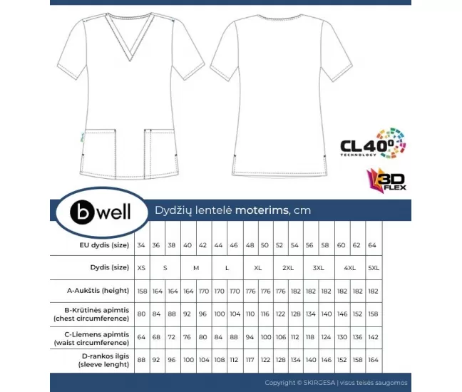 Modelis yra nuotaikingas bei praktiškas ir vienas perkamiausių iš B-well’s medicininių drabužių.