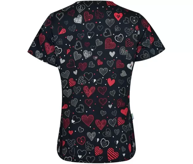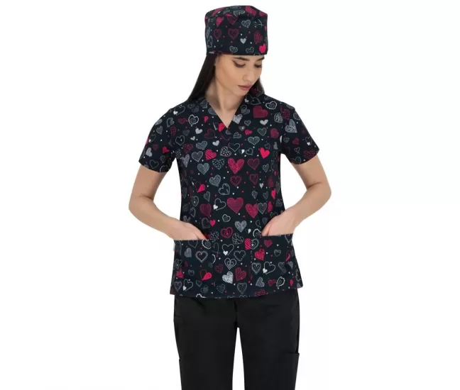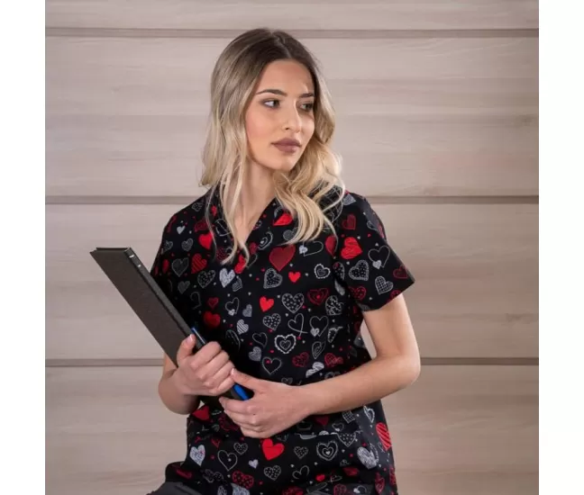 Medicininė moteriška palaidinė BAMBINA, juoda su širdelėmis