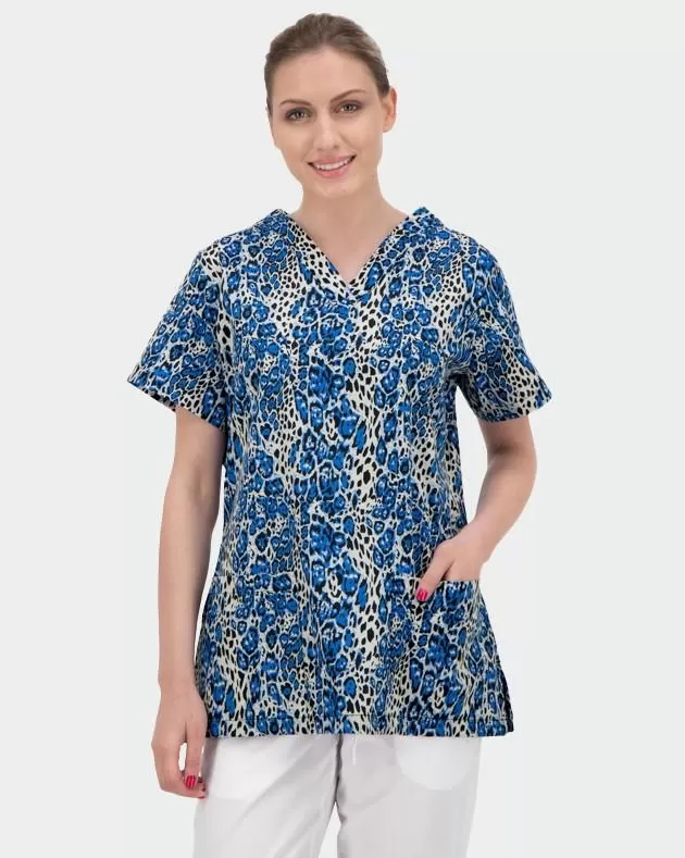 Medicininė moteriška palaidinė BAMBINA, mėlyna su leopardaisB-well BAMBINApalaidinė yra mėlyna su leopardais, tinka nešioti vaikų medicinos centruose, odontologijos kabinetuose, darželiuose, veterinarijos klinikose.