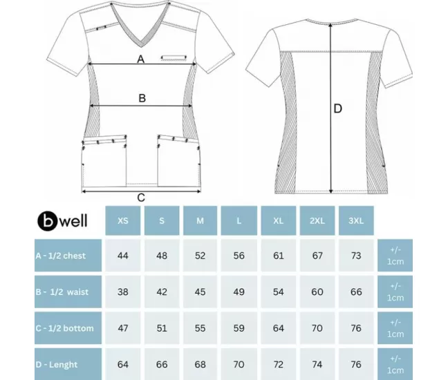JULIA stilinga medicininė moteriška palaidinė trumpomis rankovėmis, pasiūta iš lengvo poliesterio, viskozės ir elastano mišinio, todėl suteikia daugiau judėjimo laisvės. Modernus kirpimas užtikrina lengvą dėvėjimą, o audinio sudėtis - išskirtinį minkštumą prie odos. Tunika turi V formos iškirptę, praktiškas kišenes su skyreliais asmeniniams daiktams ir kilpą ženkleliui.
