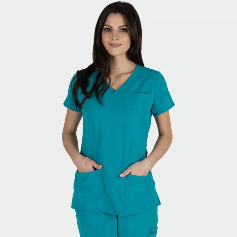 Medicininė moteriška palaidinė JULIA, žalsva (Teal)JULIA medicininė moteriška palaidinė sujungia eleganciją ir praktiškumą, ji priglunda prie moters kūno, todėl visą dieną atrodysite profesionaliai ir pasitikinčiai savimi. Tai puikus pasirinkimas šiuolaikiniams sveikatos priežiūros specialistams.