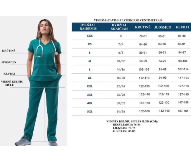 Medicininė palaidinė 2900 karališkai mėlynaDailiai pasiūta kaklo linija.