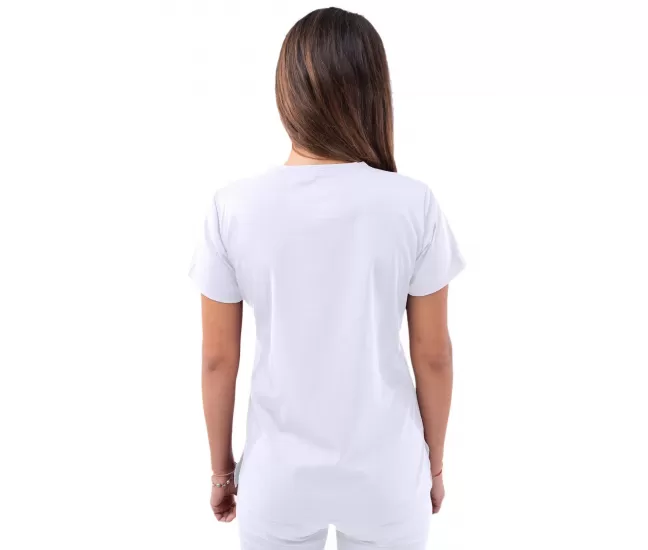 Medicininė palaidinė P4210 baltaDĖMESIO, perspėjame, kad drabužiai iš baltų medžiagų su poliesteriu šiek tiek persišviečia. Jeigu manote, kad jums tai netiks, rekomenduojame rinktis baltus drabužius iš 100% medvilnės.