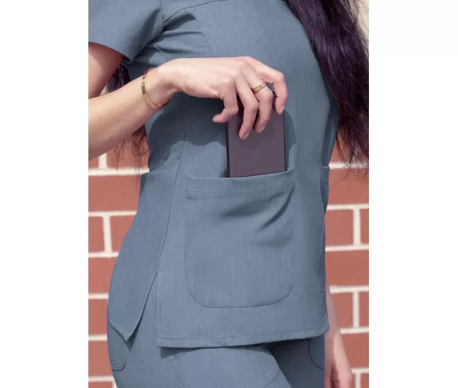 Medicininė palaidinė P4210 Heather tamsiai mėlyna2 talpios priekinės kišenės.