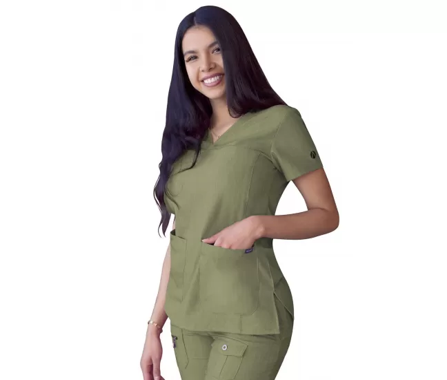 Medicininė palaidinė P4210 Heather žalia2 talpios priekinės kišenės.