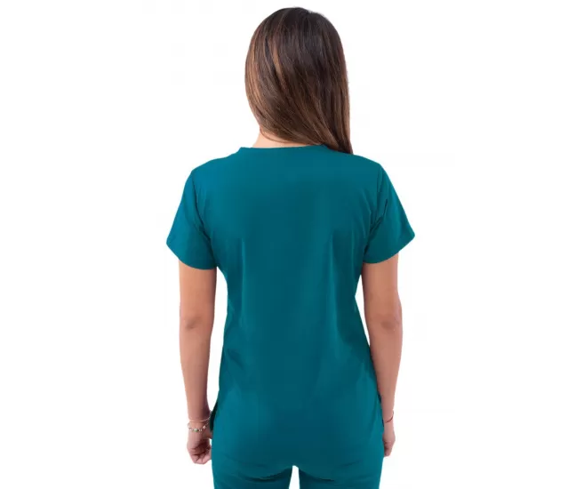 Medicininė palaidinė P4210 karibų mėlyna2 talpios priekinės kišenės.