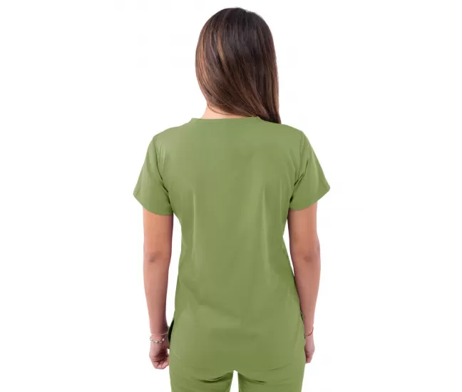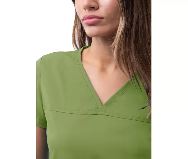 Medicininė palaidinė P4210 pavasarinių lapų žalia2 talpios priekinės kišenės.