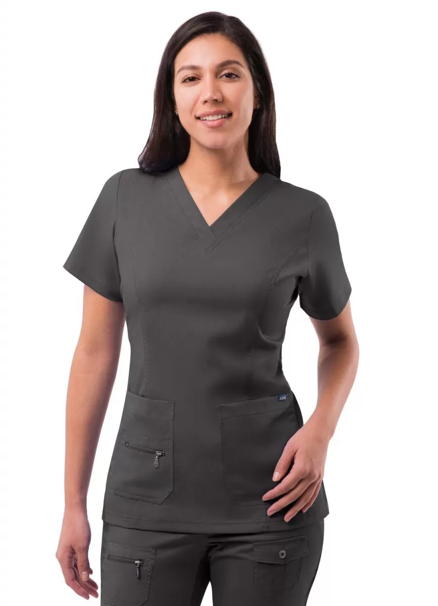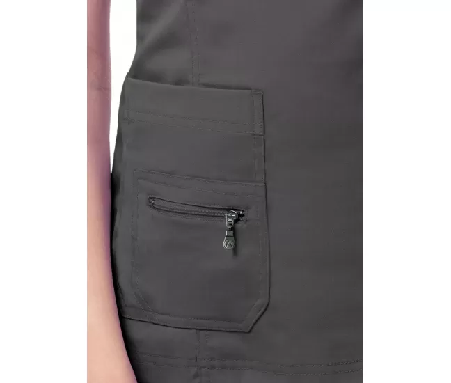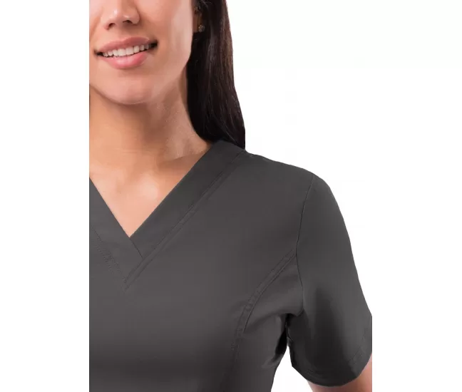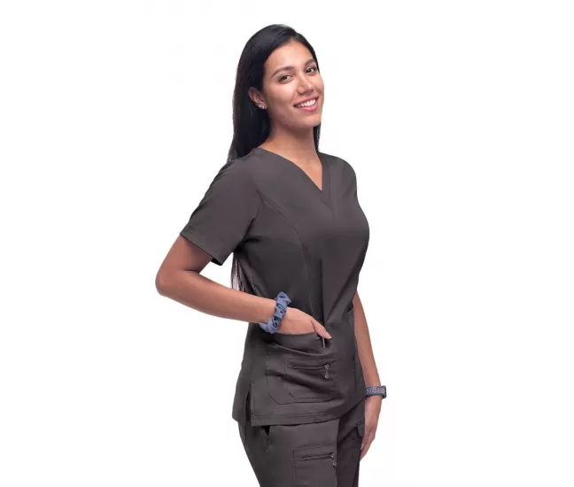Medicininė palaidinė P4212 tamsiai pilkaDvigubos siūlės V formos kaklo iškirptė.
