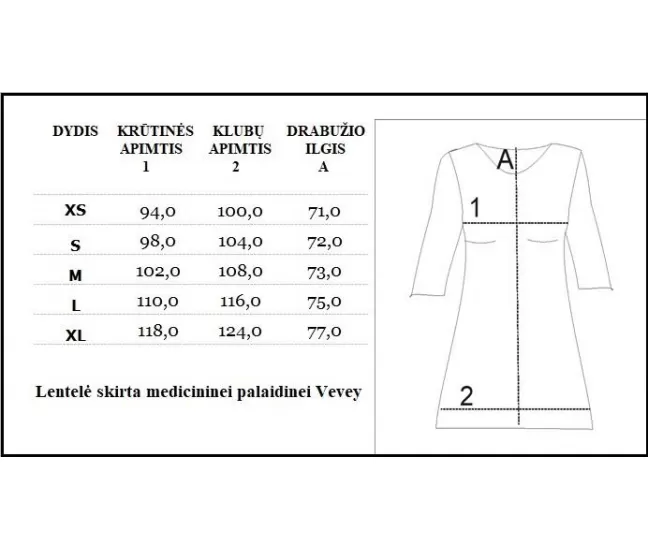 Medicininė palaidinė Vevey juodaSertifikuota bakteriostatinė audinio technologija, padengta sidabro Nano dalelėm, todėl padeda užkirsti kelią bakterijų plitimui, odos sudirgimui ir nemaloniems kvapams.