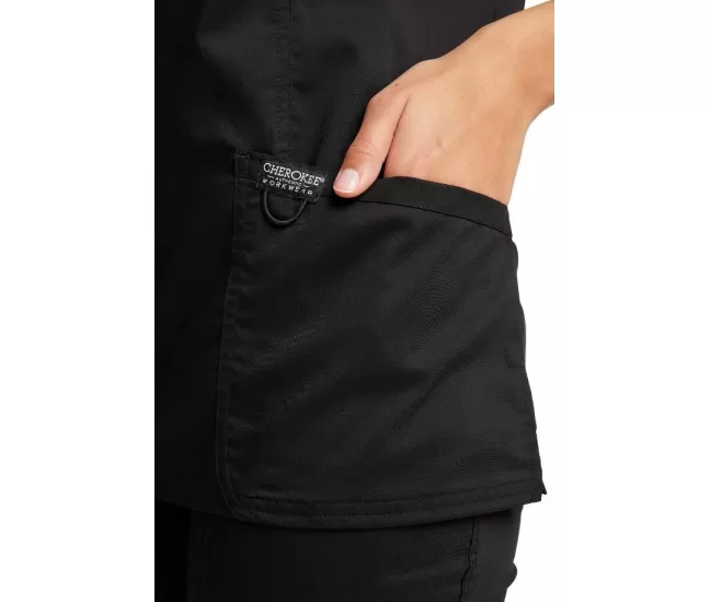 Medicininė palaidinė WWE610 juodaModernaus klasikinio stiliaus moteriška medicininė paladinė su V formos iškirpte ir dviems priekinėmis funkcinėmis kišenėmis.