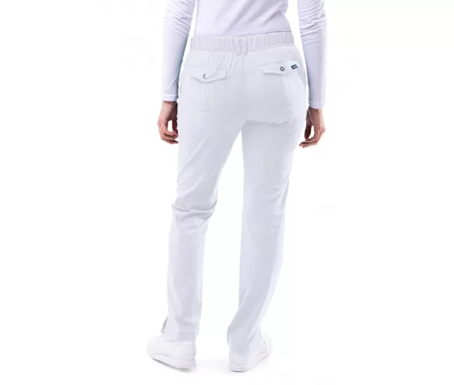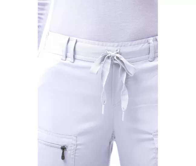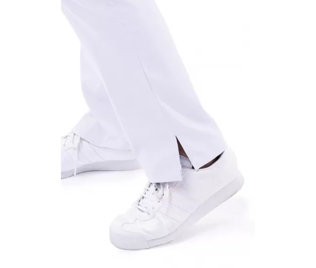 Medicininės kelnės P4100 baltosDĖMESIO, perspėjame, kad drabužiai iš baltų medžiagų su poliesteriu šiek tiek persišviečia. Jeigu manote, kad jums tai netiks, rekomenduojame rinktis baltus drabužius iš 100% medvilnės.