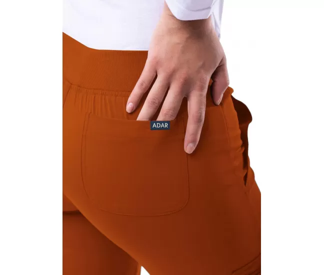 Medicininės kelnės P7104 cinamono spalvosPlati, elastinga juosmens juosta su raišteliu.