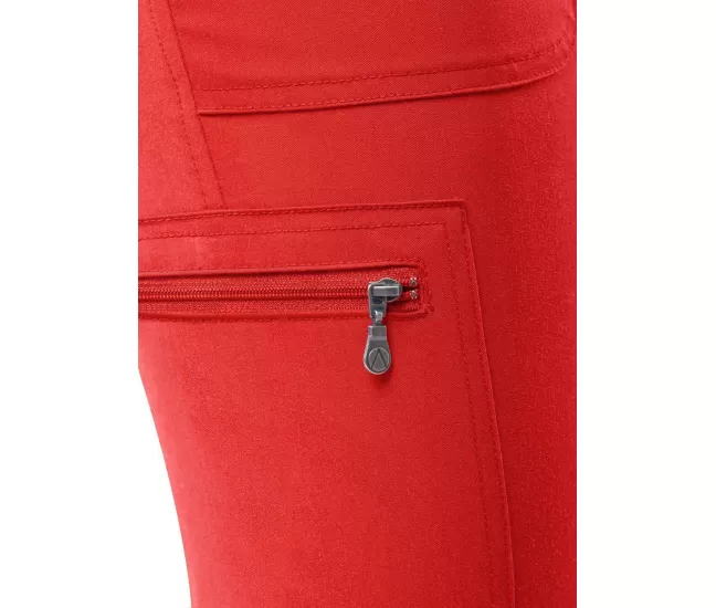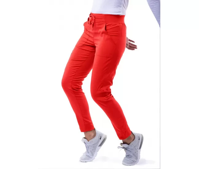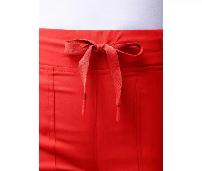 Medicininės kelnės P7104 raudonosPlati, elastinga juosmens juosta su raišteliu.