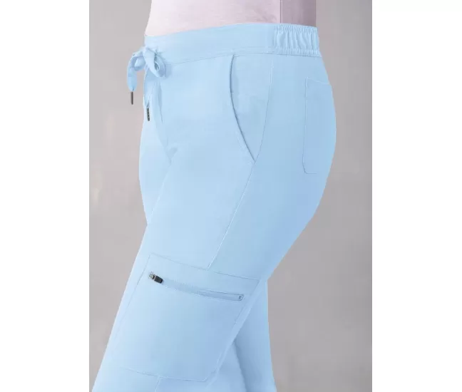 8 kišenės: 2 gilios abiejuose šonuose, 1 maža vidinė kišenė ant kairės kojos, 1 didelė kišenė dešinėje pusėje kartu su kišene žirklėms, 1 didelė kišenė su užtrauktuku kairėje pusėje, 2 galinės kišenės;