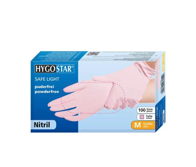 Nitrilinės pirštinės Safe Light, rožinės, 100 vnt.Pirštinės be pudros, nealergizuojančios, 24 cm ilgio.