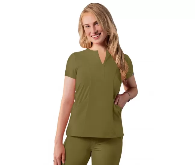 Notched V-neck Top A6002 Martini OliveContemporary Fit.