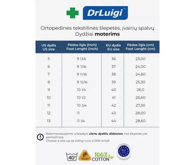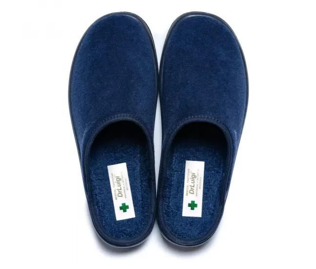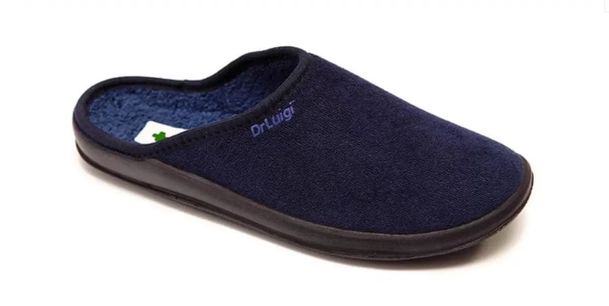 Ortopedinės tekstilinės šlepetės DrLuigi, tamsiai mėlynos! Rekomenduojame užsisakyti vienu dydžiu didesnes, nes šlepetės yra pamažintos!