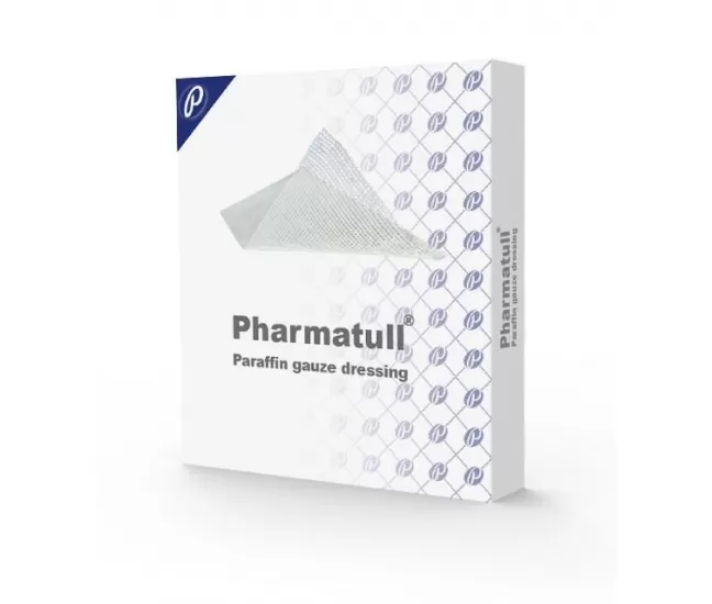 Parafininis tvarstis, 10 cm x 1 mPharmatull® yra mažai lipnus parafino marlės tvarstis, pagamintas iš medvilninės leno marlės, impregnuotos baltu minkštu parafinu.