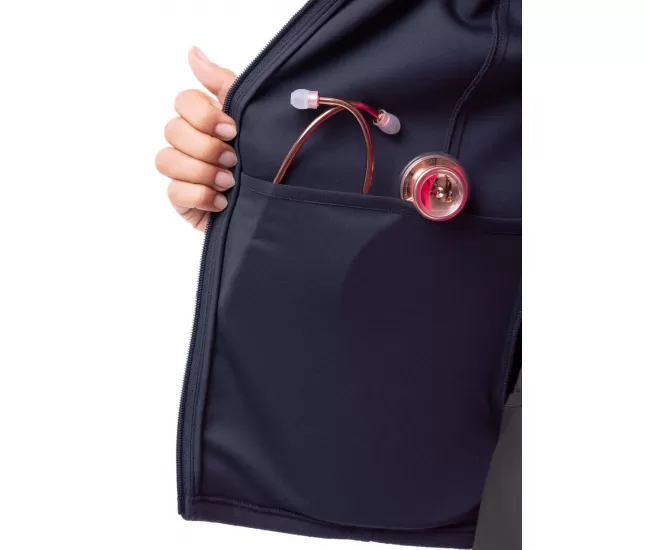 Švarkelis užsegamas užtrauktuku P7202 tamsiai mėlynasAukšta apykaklė.