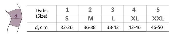 Dydžių pasirinkimas: 1 (S); 2 (M) ; 3 (L) ; 4 (XL), 5 (XXL).